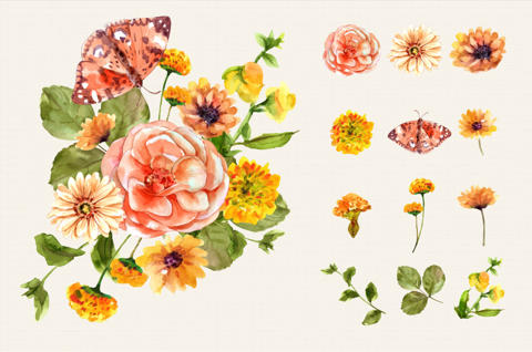 عناصر گل دستی رسم شده